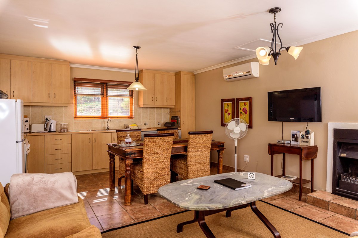One bedroom with a queen size bed, bathroom with a shower and heater. Fully equiped kitchen and lounge with air conditioning and fire place.