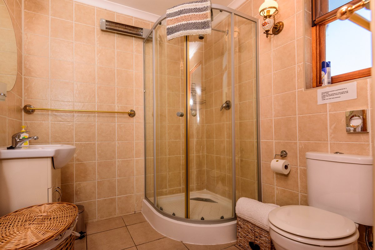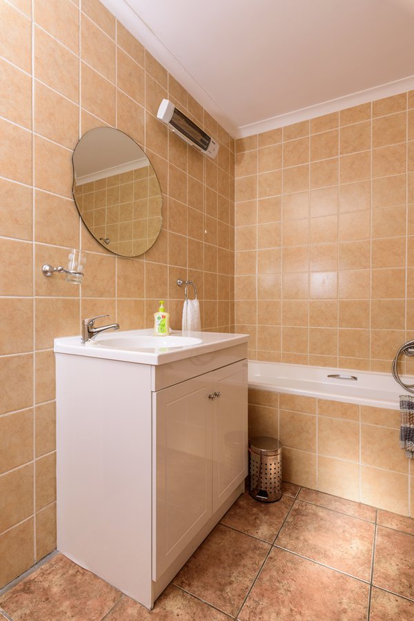 Two bedrooms, main bedroom has queen size bed and en-suite bathroom with bath and shower, with heater. Second bedroom has 2 single beds and also en-suite with a shower. Fully equiped kitchen and lounge with air conditioning as well as a fireplace.